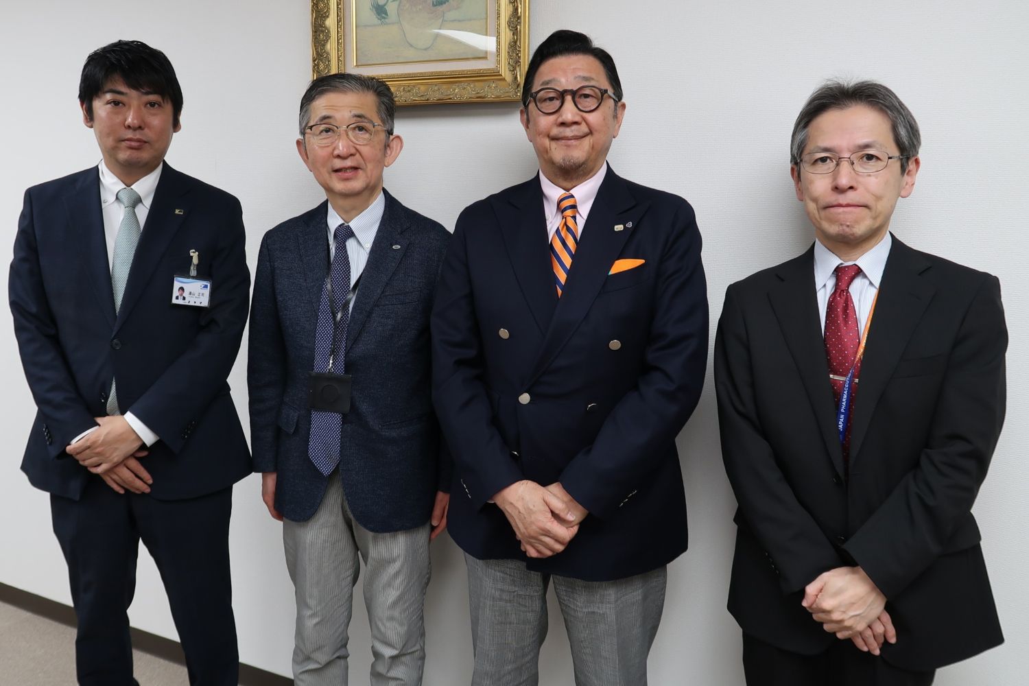 当会からは酒井哲嗣会長、湯山正司広報委員、東海林事務局長、飯塚事務局次長が訪問しました。